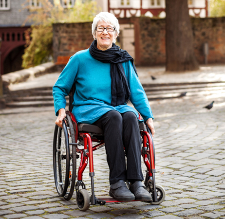 Natürlich brauche ich Hilfe, und es ist sicher nicht einfach – weder für mich als Betroffene noch für meine Angehörigen –, die veränderten Rollen im Leben anzunehmen. Aber ich möchte in meiner eigenen Wahrnehmung und in den Augen anderer nicht nur der „hilfsbedürftige Mensch“ sein. Ich verwende deswegen viel Energie darauf, mein Leben bewusst und proaktiv zu planen. Seit einiger Zeit nutze ich einen Rollstuhl und fühle mich damit beweglicher und sicherer als auf den eigenen Beinen.